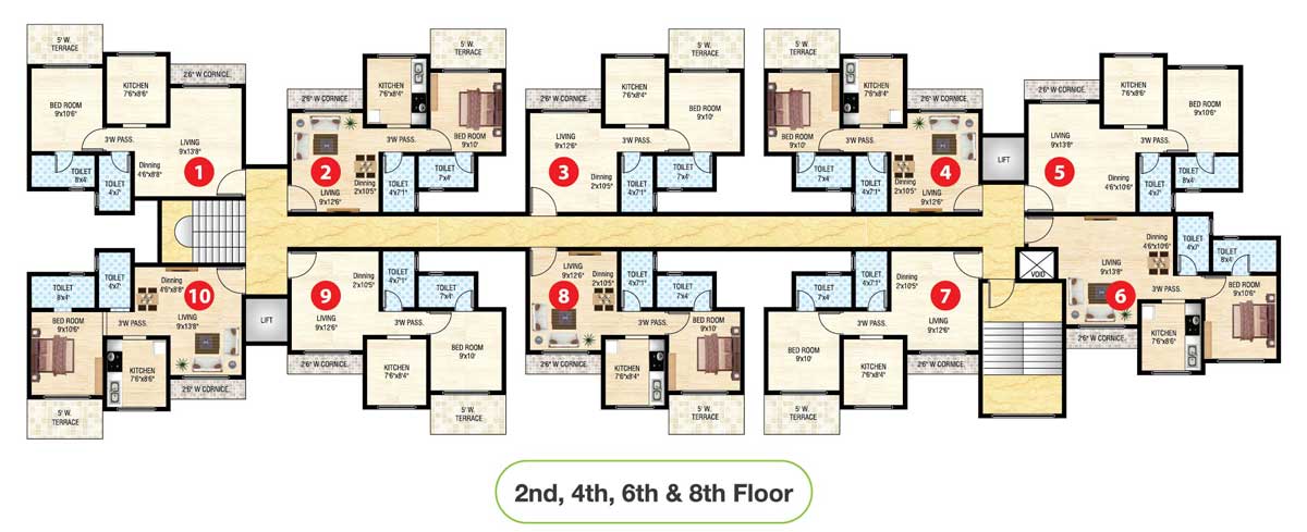| Concealed copper wiring with reputed brand switches, telephone & TV (Cable) points in living room & master bedrooms.